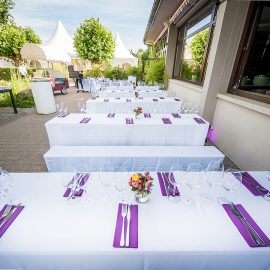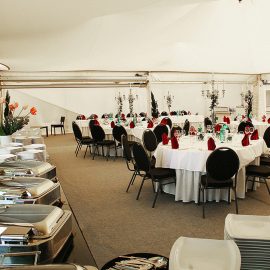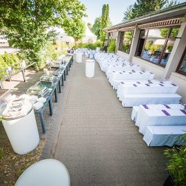 Ob 60 oder 200 Gäste: mit den richtigen Arrangements von Tischen, Stühlen, Loungearea und Tanzfläche entsteht ein tolle Ambiente für eine entspannte Veranstaltung.
